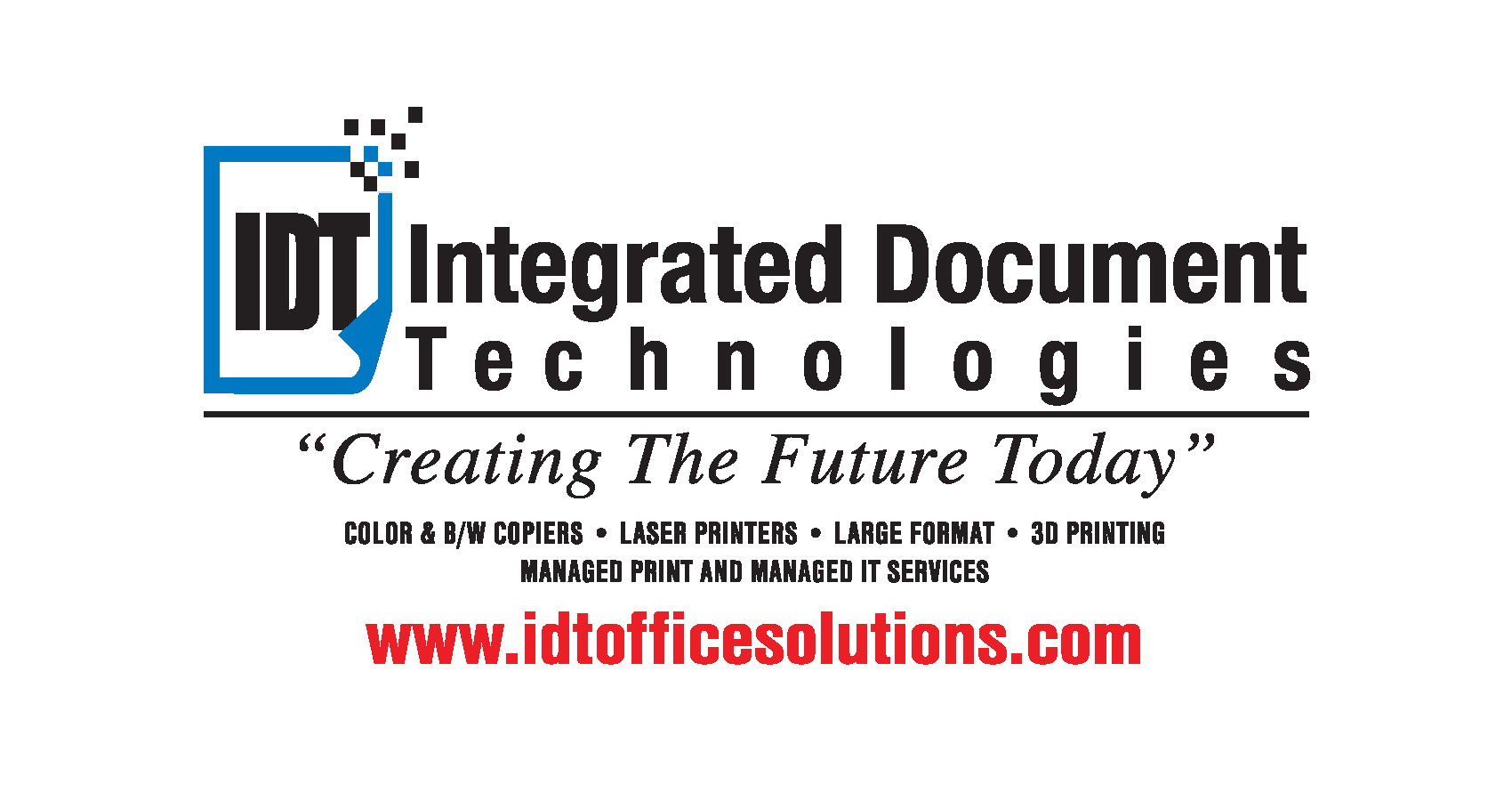 Integrated Document Technologies (IDT) is committed to delivering exceptional customer service through the sale, service, and support of office technology that enhances productivity and improves document workflow. The company specializes in providing cost-effective solutions tailored to each client’s operational needs. IDT sells, services, consults, and maintains a wide range of office equipment and software solutions. Their comprehensive portfolio includes managed print services, IT and network support, security systems, AI and document management systems – all designed to streamline processes, reduce expenses, and increase efficiency. With decades of industry experience, the IDT team takes a consultative approach to help clients make informed decisions about their technology investments. They stay current on the latest advancements in the marketplace to ensure our clients always have access to the most effective tools and services. Whether supporting small businesses or large enterprises, IDT is a trusted partner dedicated to driving results through smart solutions and outstanding service.